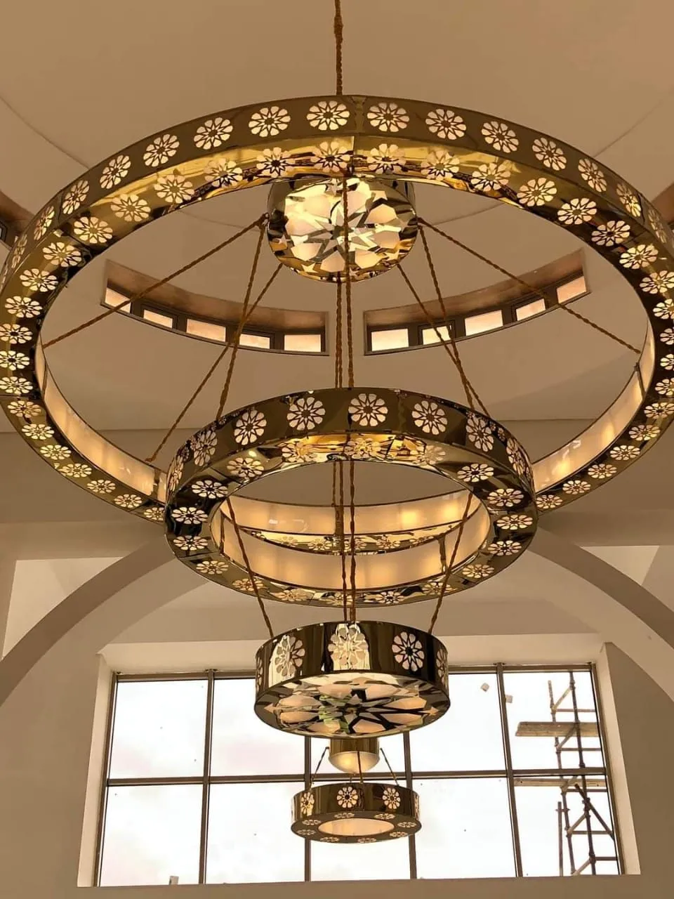 A project featuring grand chandeliers that highlight the mosque’s sophisticated design, enhancing the worship experience for visitors and students alike.